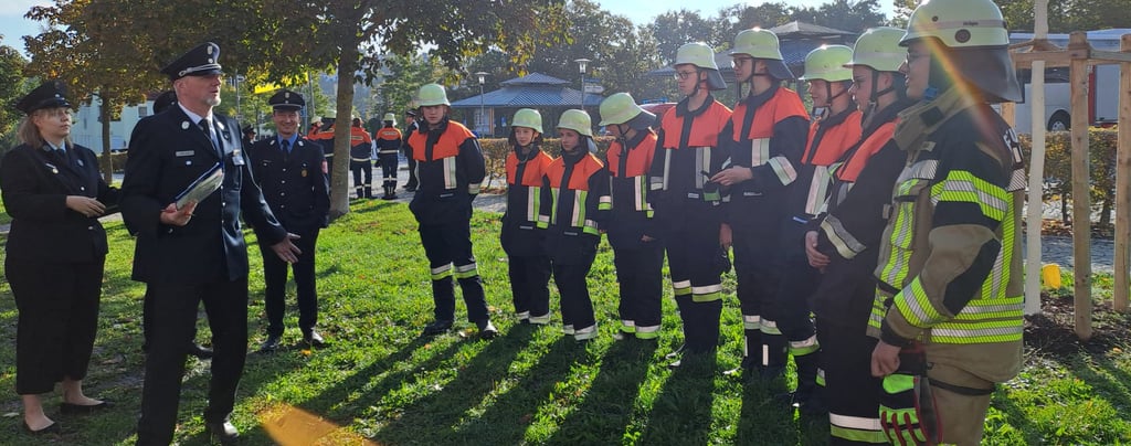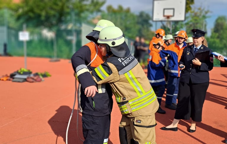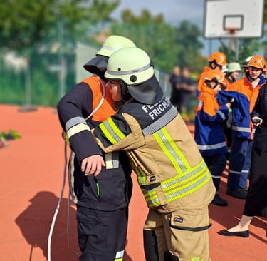 Nach einer kurzen Begrüßung der Ehrengäste starteten die zahlreichen praktischen Übungen wie Saugschlauchkuppeln, Leinenwerfen und das Anlegen des Rettungsknoten. Außerdem gab es eine schriftliche Prüfung, bei der die theoretischen Grundlagen der Feuerwehr abgefragt wurden.