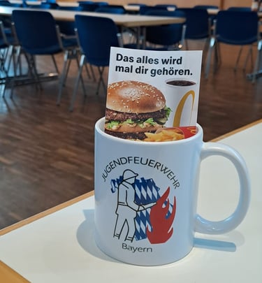 Nach dem gemeinsamen Mittagessen wurden die erarbeiteten Jugendleistungsabzeichen verliehen. Als Anerkennung für die Leistungen erhielten alle Teilnehmer neben der Auszeichnung auch eine Tasse und einen Gutschein.